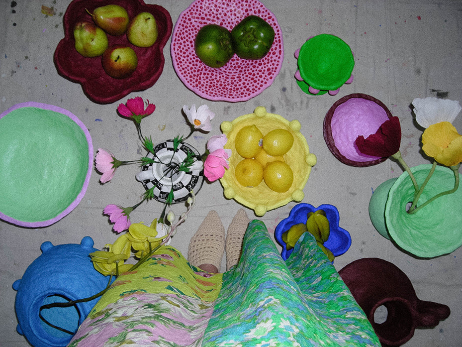 "My work is driven by a practical concern for waste and a desire to create meaningful objects with a lighter environmental impact. I work primarily with a medium I make from scratch called Cardcrete — made from recycled paper and cardboard collected locally. It has a clay-like quality that allows me to build vessels, sculptural forms and wall pieces with texture and physical presence."